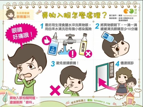 異物如眼,緊急處理方式: